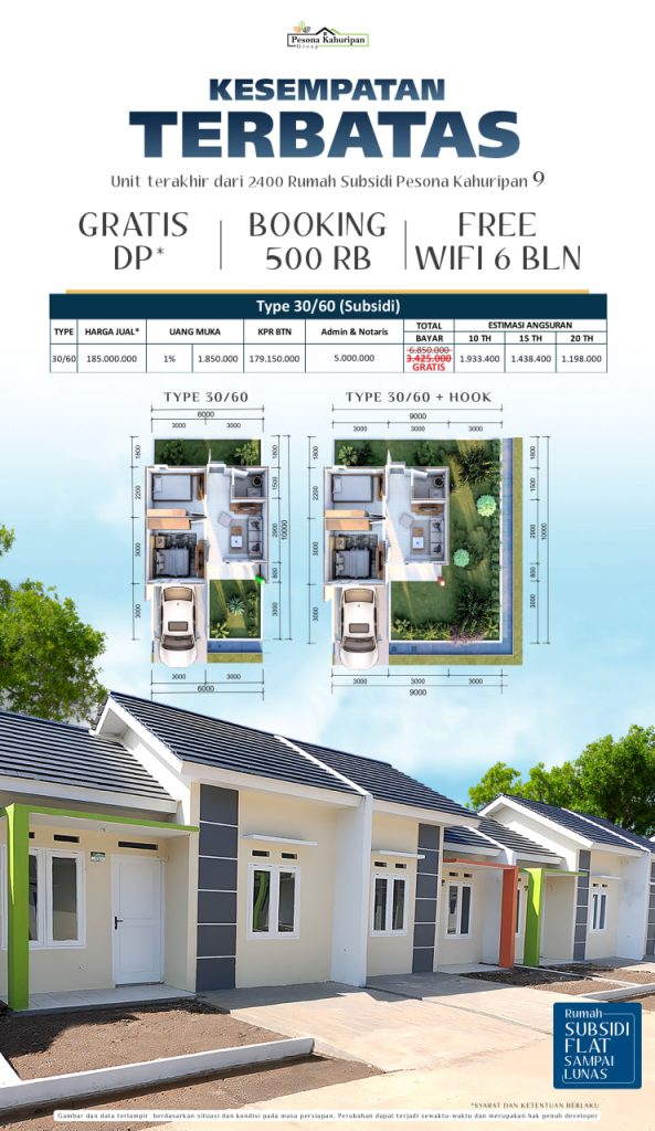 Rumah Subsidi Double Dinding,Cicilan 1 Jutaan,Type 30-60 Pesona Kahuripan 9